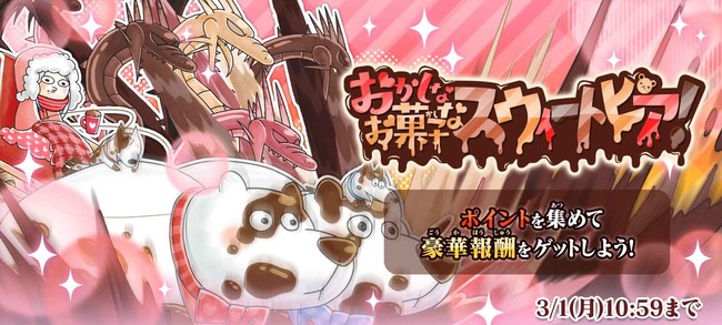 ゆるゲ大戦争製作委員会(配信・企画:東映アニメーション株式会社、企画・開発・運営:ポノス株式会社)は、人気アニメ『ゲゲゲの鬼太郎』を題材としたスマートフォン向けゲーム『ゆる~いゲゲゲの鬼太郎 妖怪ドタバタ大戦争』(略称:ゆるゲゲ)におきまして、10回ガチャで何度でも限定超激レアが手に入る「バレンタインガチャ」およびイベント「おかしなお菓子なスウィートピア!」の開催をお知らせいたします。