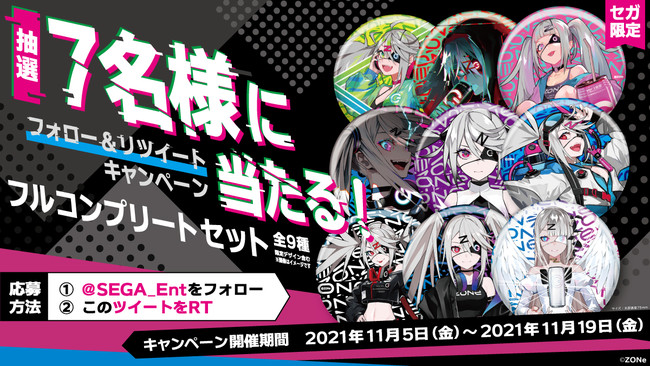 セガのお店公式Twitterアカウントをフォローの上で、該当のツイートをリツイートされたお客さまの中から抽選で7名様に、セガ池袋限定デザインを含む缶バッジ9種のコンプリートセットを進呈致します。