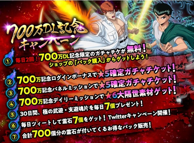 - 「700万DL突破記念キャンペーン」概要