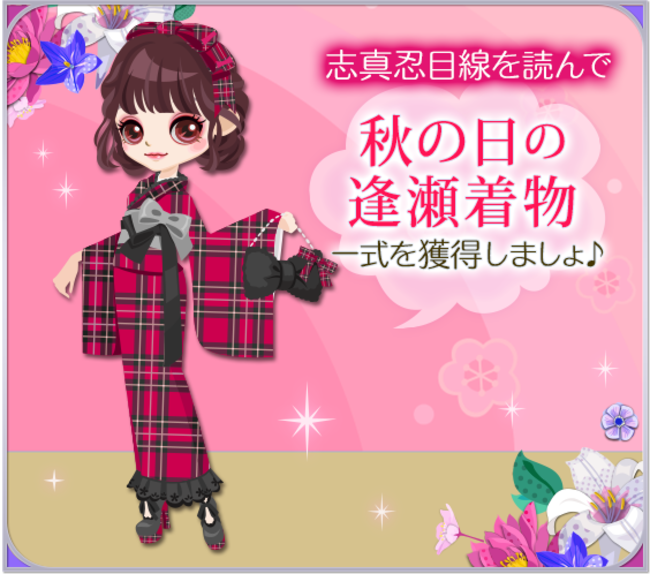望月志真の本編忍目線ストーリーを期限までに読み終えると「秋の日の逢瀬着物」一式が手に入ります。