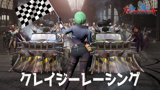 「クレイジーレーシング」はレーシングカーに乗り、迫りくるゾンビ達を躱すもしくは倒すことでポイントを得ることができる、ランゲームとシューティングゲームの要素が合わせったようなコンテンツが遊べる期間限定イベントです。