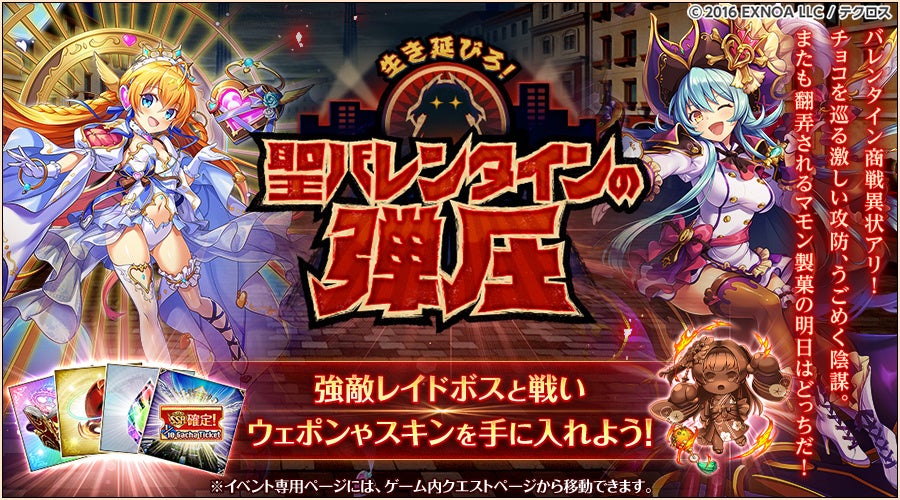 期間限定レイドイベント「生き延びろ!聖バレンタインの弾圧!」が開催中です!