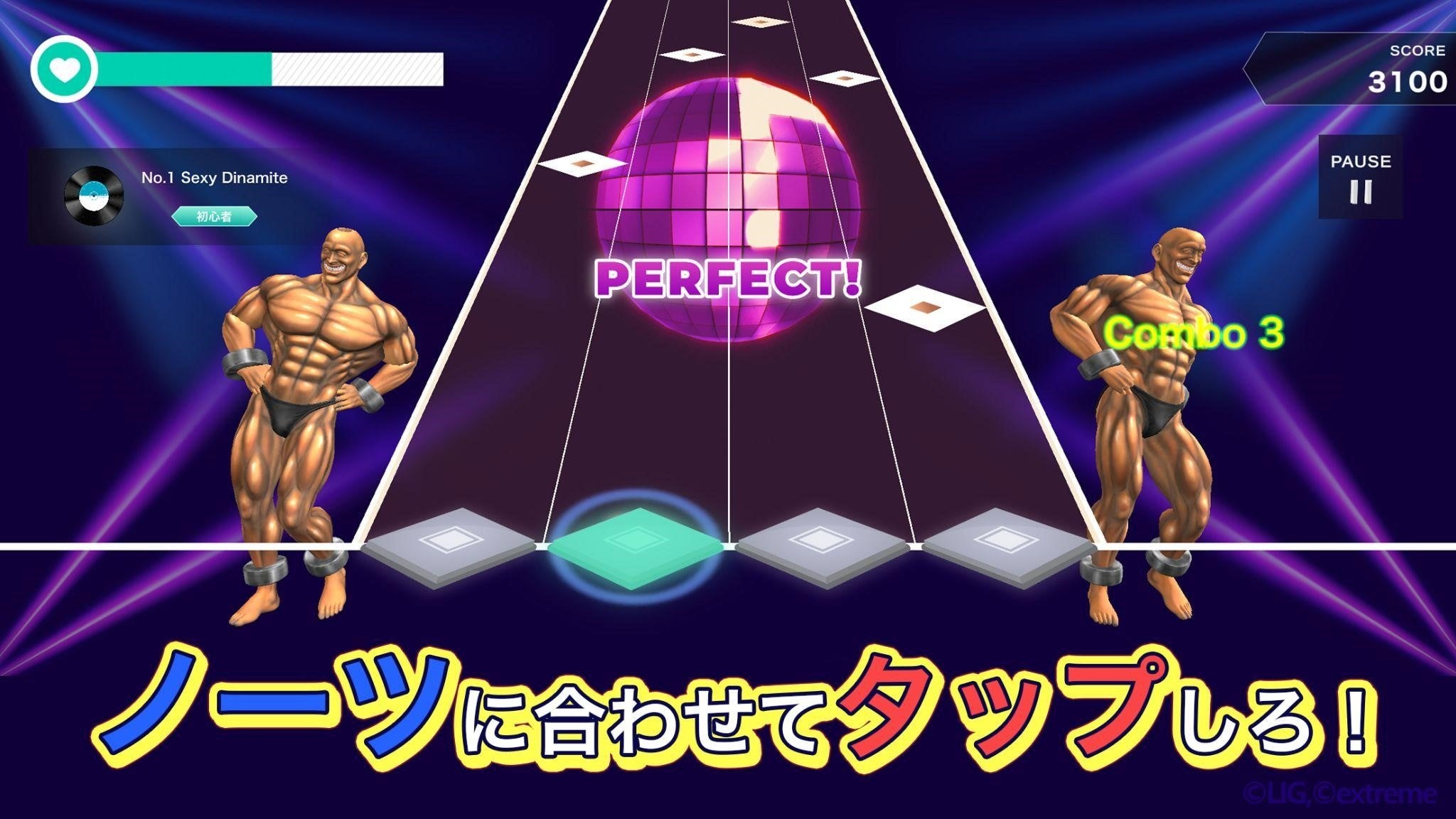 本作品はカジュアルリズムゲームというジャンルで、誰でも簡単操作でプレイすることができます。超兄貴のファンの方はもちろん、はじめて超兄貴にふれる方も楽しめます。