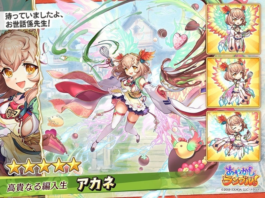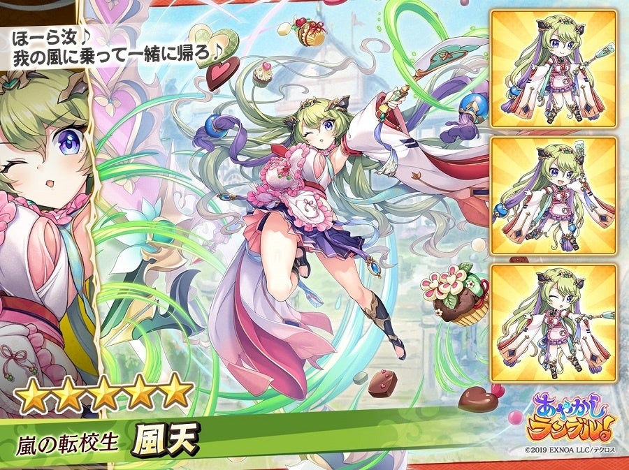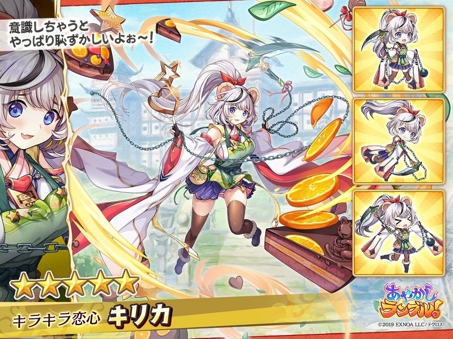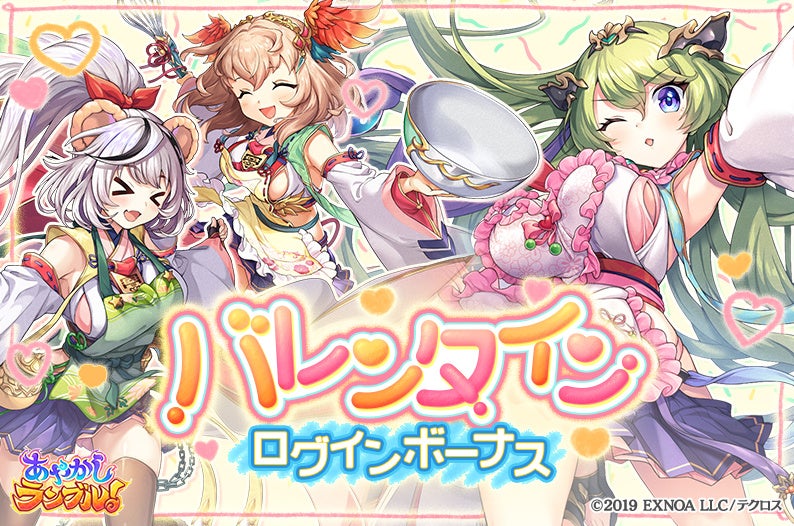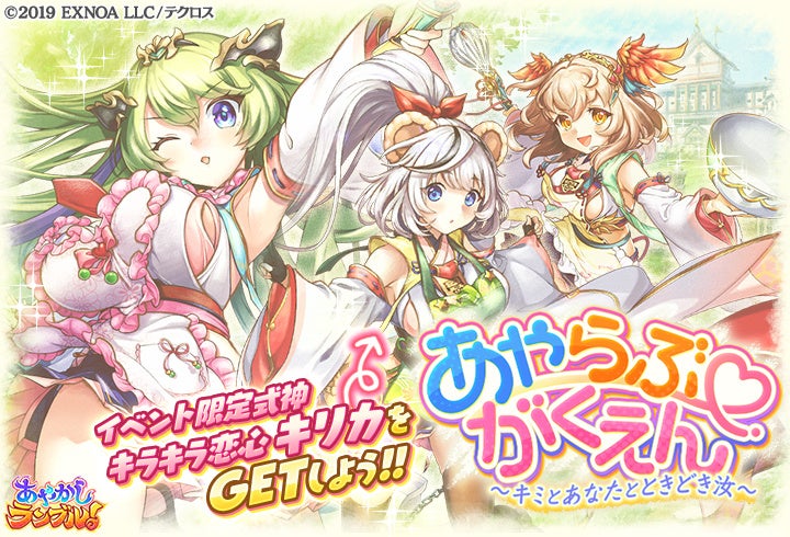 合同会社EXNOA(本社:東京都港区、CEO:村中 悠介、URL:https://games.dmm.com/)が運営するDMM GAMESにおいて、あやかし美少女たちと冒険する、迎撃型爽快スキルバトルRPG『あやかしランブル!』(https://ayarabu.jp/)は、2月2日16:00に、バレンタイン仕様の「★5キリカ」が手に入るバレンタインイベントの開催を発表した。さらに、バレンタイン限定式神の「★5風天」「★5アカネ」も追加された。
