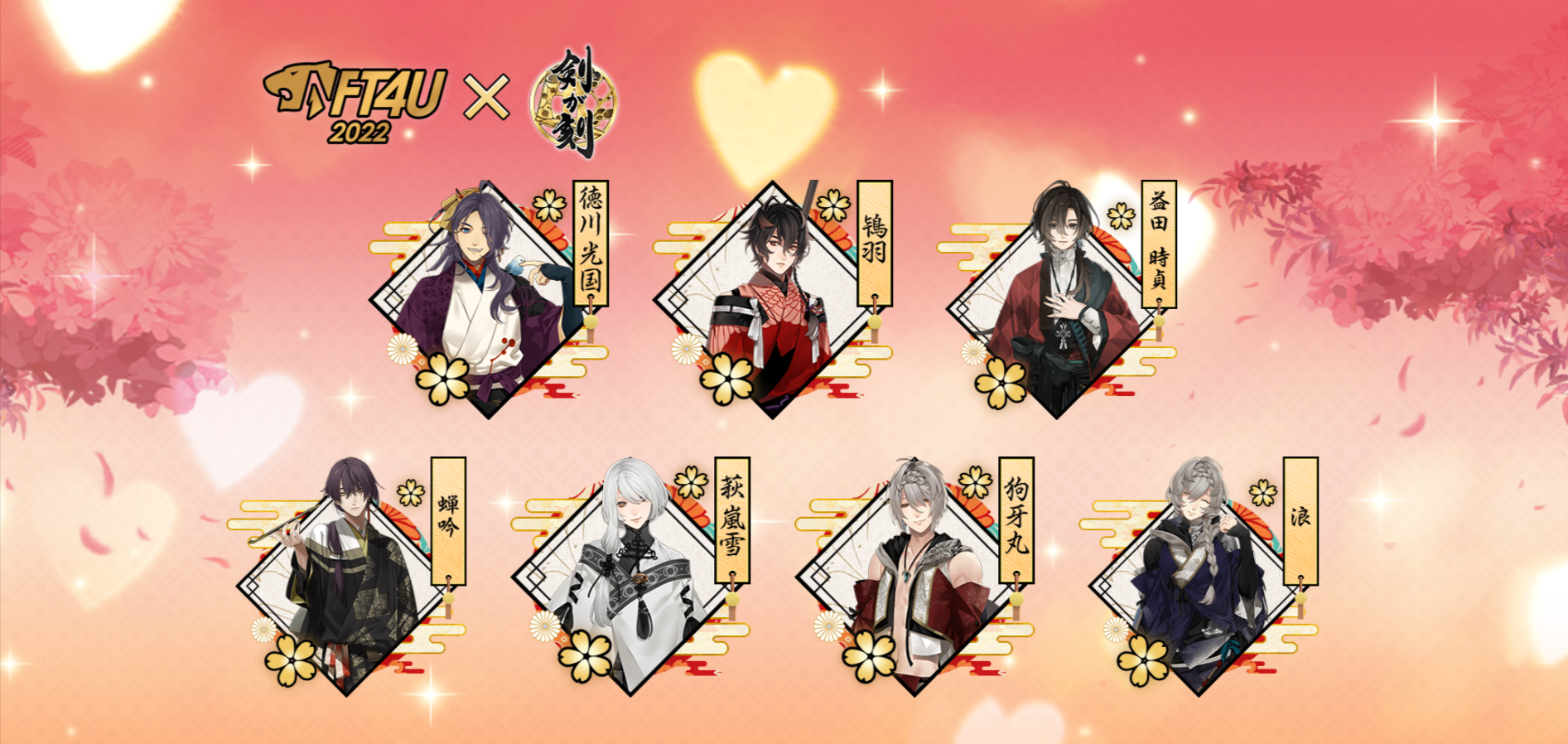 ドンバテック株式会社は、今回初となるゲーム会社とコラボ、ゲームIPを利用しNFTサービスを提供致します。『剣が刻』のアプリゲームと合作し、人気の登場人物から7人のキャラクターを集結。人族、鬼族、妖族から徳川光国、益田時貞、鴇羽、狗牙丸、浪などのNFTアバターを作成しました。