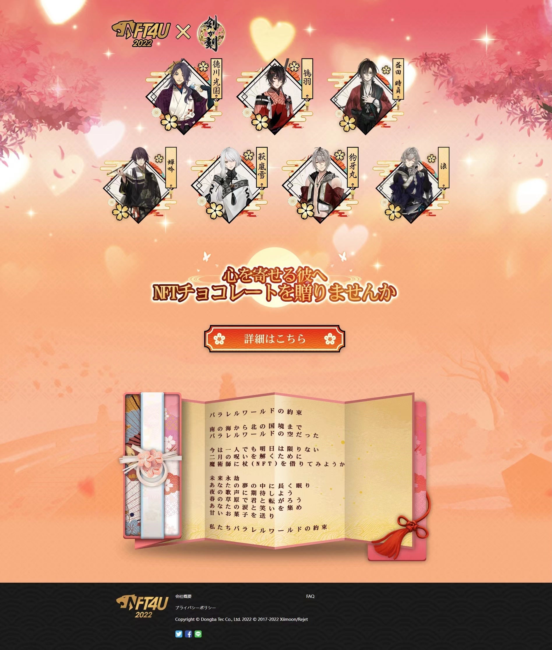 お支払い手続き完了後は、選択されたアバターから世界で唯一無二となるNFT記念品が届けられ、更に次元の壁を打ち破り、ホワイトデーには厳選された本物のチョコレートが届きます。