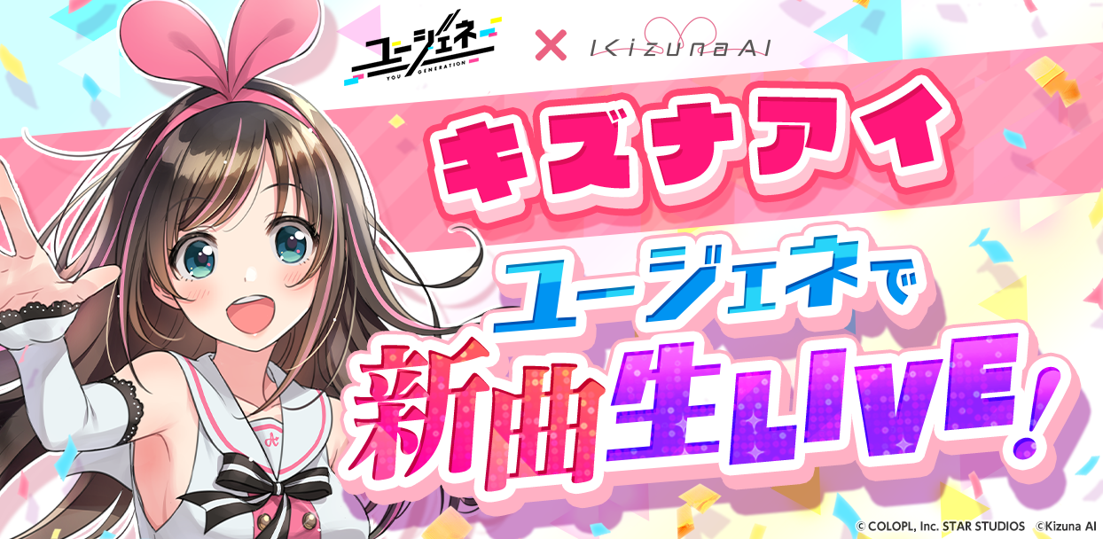 株式会社コロプラ(代表取締役社長:宮本貴志、本社:東京都港区、以下「コロプラ」)は、スマートフォン向けゲーム『ユージェネ』において、バーチャルタレント「Kizuna AI(以下、「キズナアイ」)」による生放送が2月18日(金)に実施されることが決定したことをお知らせいたします。