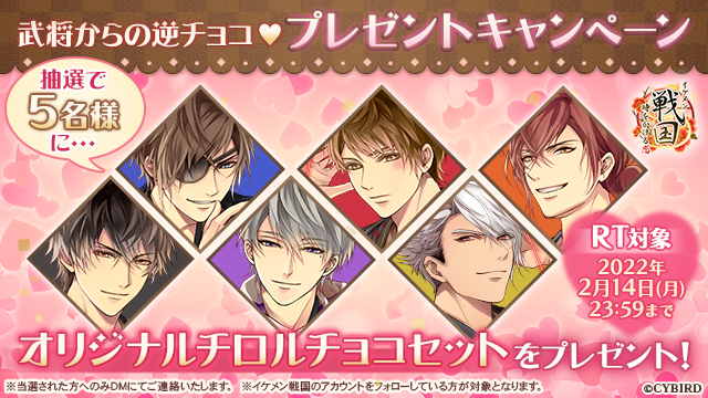 - ■バレンタイン「武将からの逆チョコ♡プレゼントキャンペーン」開催!