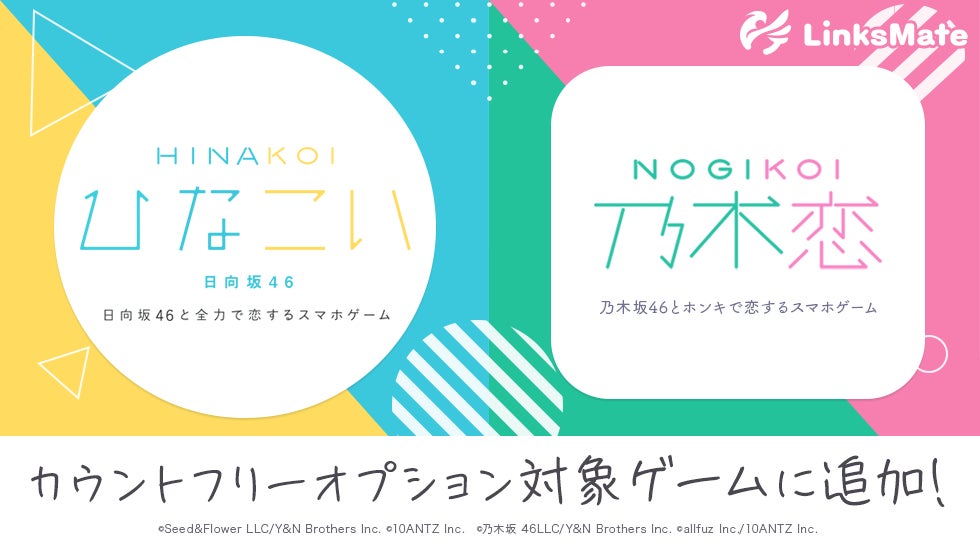 株式会社LogicLinks(以下LogicLinks、本社:東京都渋谷区、代表取締役社長:春田康一)は、MVNOサービス「LinksMate」において2022年2月7日(月)よりカウントフリーオプション対象コンテンツとして株式会社10ANTZ(以下10ANTZ、本社:東京都渋谷区渋谷3-12-18 渋谷南東急ビル4階、代表取締役社長:髙澤 真)が提供する『乃木恋』『ひなこい』を新たに追加することをお知らせいたします。
