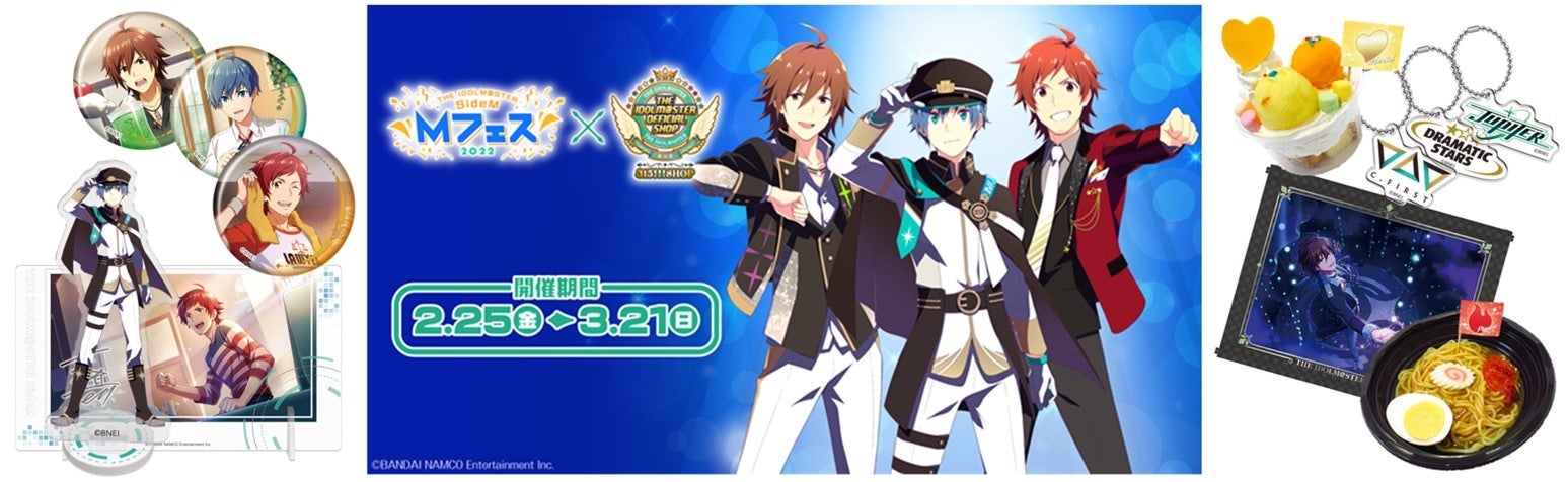 株式会社バンダイナムコアミューズメントは「アイドルマスター SideM Mフェス 2022 × 315(サイコー)!!!SHOP」(東京・池袋 ナンジャタウン内)で販売する、オリジナルグッズ・ミニゲーム・デザート&フードの情報を公開しました。