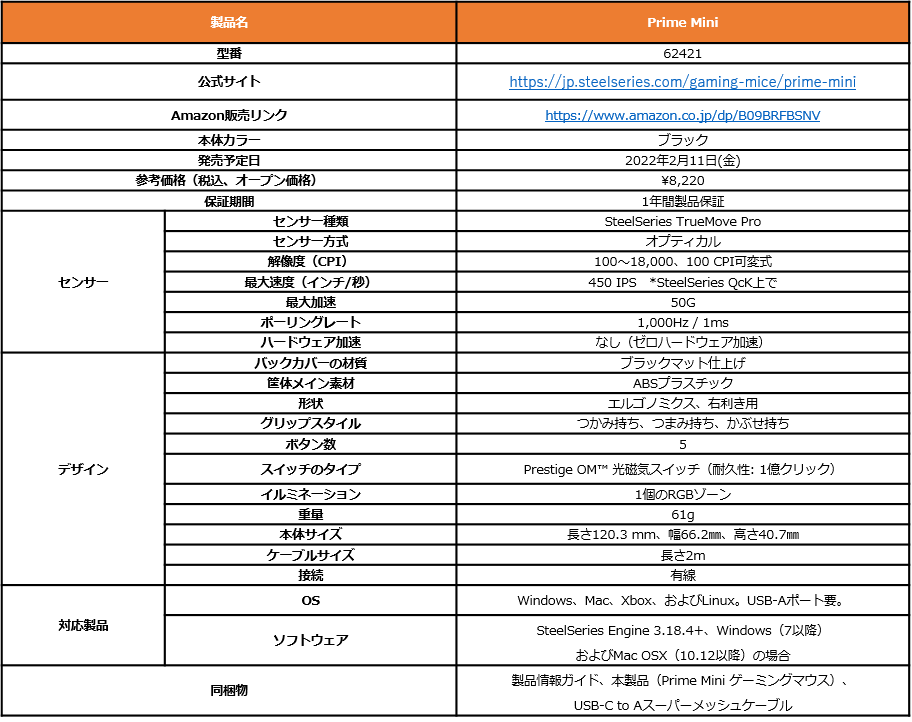 全世界100人以上のeスポーツ選手の意見を反映し、勝利のためにデザインされた競技向けゲーミングギア「Prime」シリーズのゲーミングマウス「Prime Mini」は、狙ったタイミングを逃さない光速反応スイッチ「Prestige OM™」を搭載しています。このスイッチは、光学センサー、特大スプリング、磁気連結を組み合わせることにより、FPSやTPSで最も必要なスイッチの反応速度において、遅延ゼロ、デバウンスゼロを実現しました。また、メリハリと一貫性のあるクリック感が失われることなく、1億クリックの耐久性を誇り、プレイヤーを勝利へと導きます。