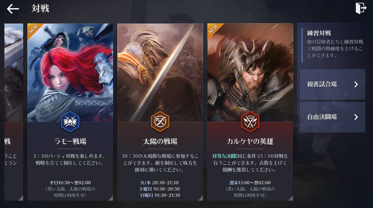 また、既存の「闘技場一般対戦」を「一般試合場」に変更し、「カルケヤの英雄」と同じ条件で練習試合を行うことができます。