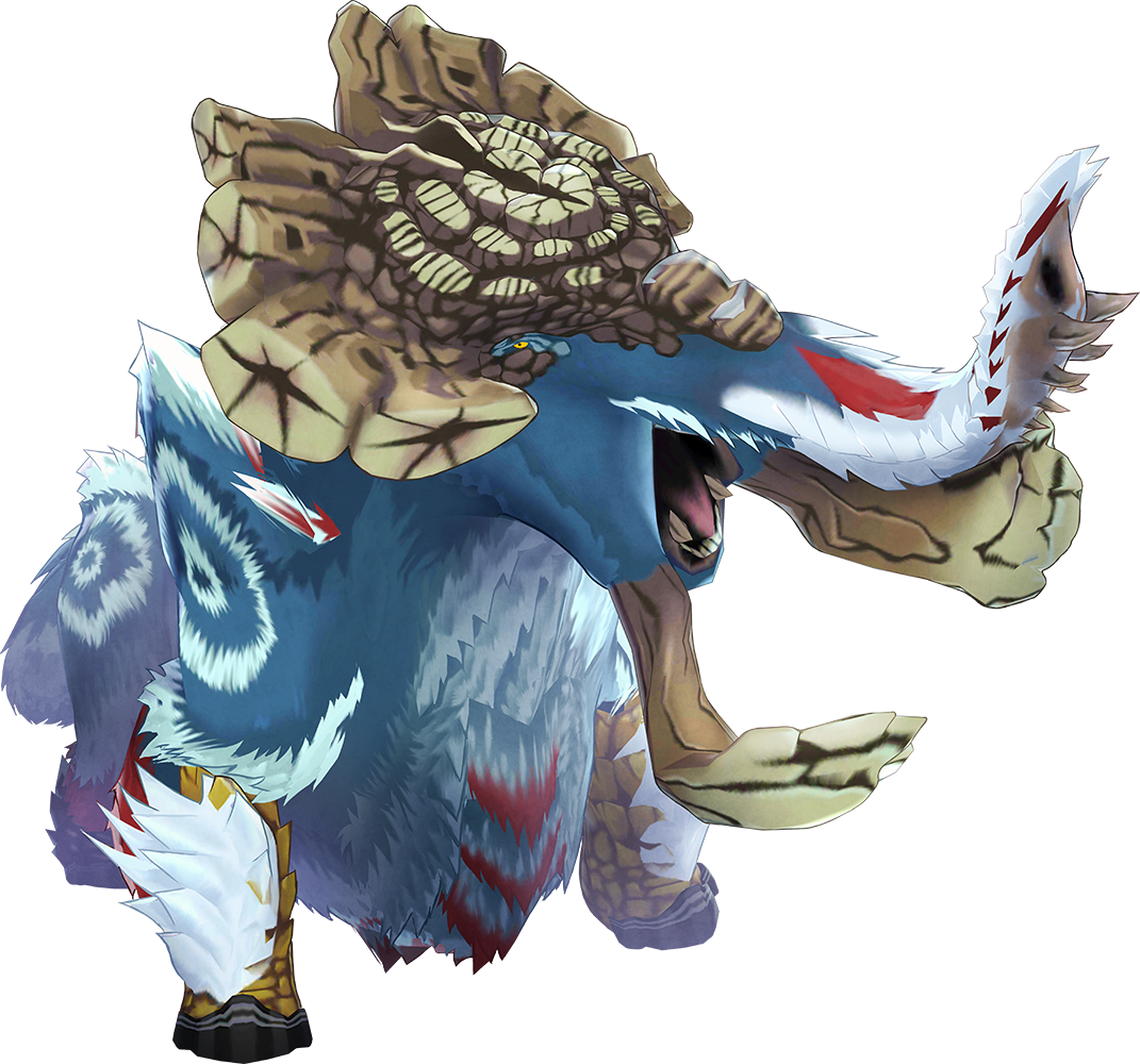 長い年月、極限の環境を生き抜き、甲殻と体躯を鍛えぬいたガムートの特殊な個体。通常種よりもさらに一回り大きく、経年によるものか、体毛が白銀に変化し、甲殻の形も変化し、強度も増している。他のモンスターと戦う姿はほぼ目撃されていないが、セレルカやヒダン連峰で起こる大規模な雪崩や大吹雪などの自然災害の原因は、銀嶺ガムートにあると考えられている。