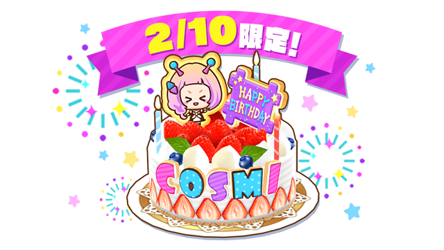「コズミ」の誕生日である2月10日(木)に「コズミ お誕生日会!」を開催します。開催にあわせ「誕生日限定エール」や「スペシャルコスチューム」が登場いたします。また、参加者全員にルームで使用できる「コズミ抱き枕」をプレゼントする他、抽選で本物の「コズミ抱き枕」が当たるキャンペーンも開催いたします。年に1度のコズミのお誕生日会をぜひお楽しみください。