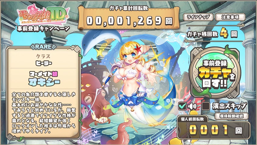 合同会社EXNOA(本社:東京都港区、CEO:村中 悠介、URL:https://games.dmm.com/)が運営するDMM GAMESにおいて、事前登録中のタワーディフェンスゲーム「モンスター娘TD~ボクは絶海の孤島でモン娘たちに溺愛されて困っています~」の事前登録が20万人を突破したことをお知らせいたします。また、本作に登場するモンスター娘による新たなASMR動画を公式Twitterにて公開いたしました。