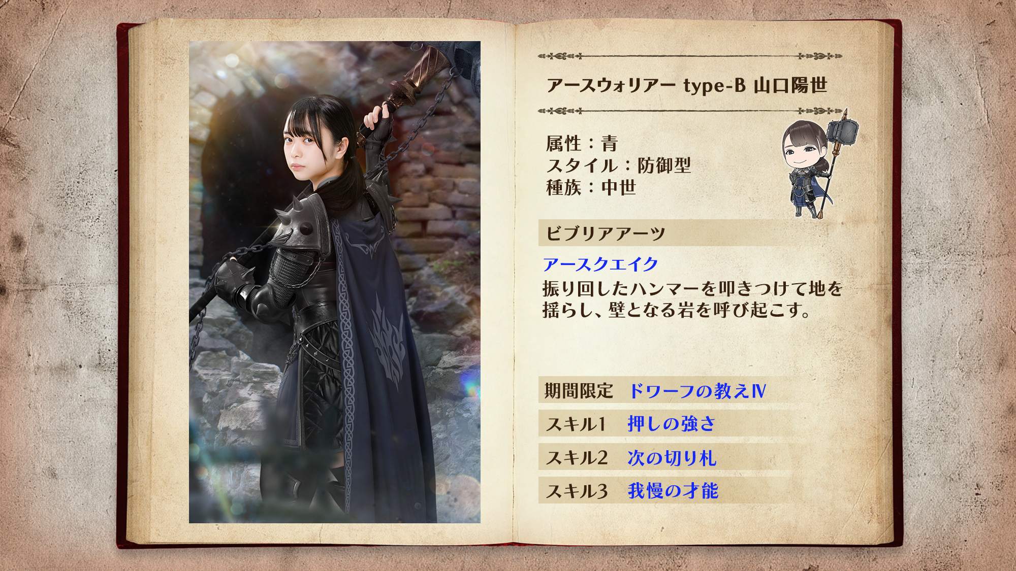 「★4 アースウォリアー」は最前線のかなめとなる防御型ユニット! ビブリアアーツで岩壁を出現させ、敵の侵攻を阻みます。