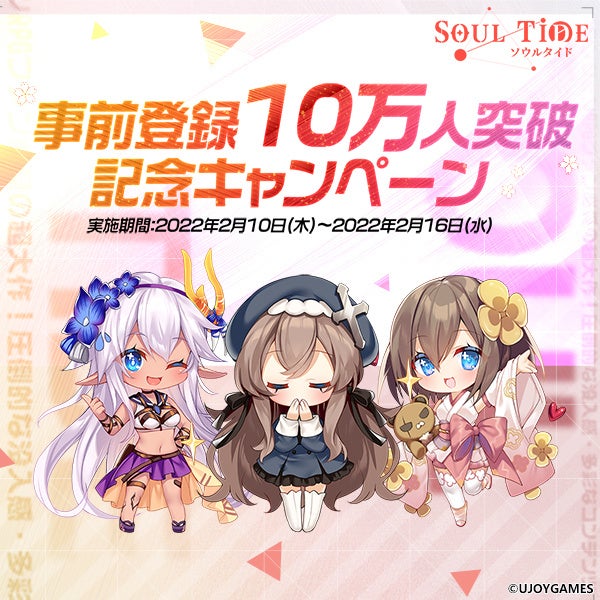 眠れる魂が、ここで二度目の生を受ける――Ujoy Gamesによりリリース予定の迷宮探索RPG『ソウルタイド』(Soul Tide)は、事前登録者が10万人を突破したことをお知らせします!さらに、こちらを記念して、最大20,000円分の賞品が当たるキャンペーンを開催中!詳しくは『ソウルタイド』公式Twitterをこの機会にぜひチェックしてください!