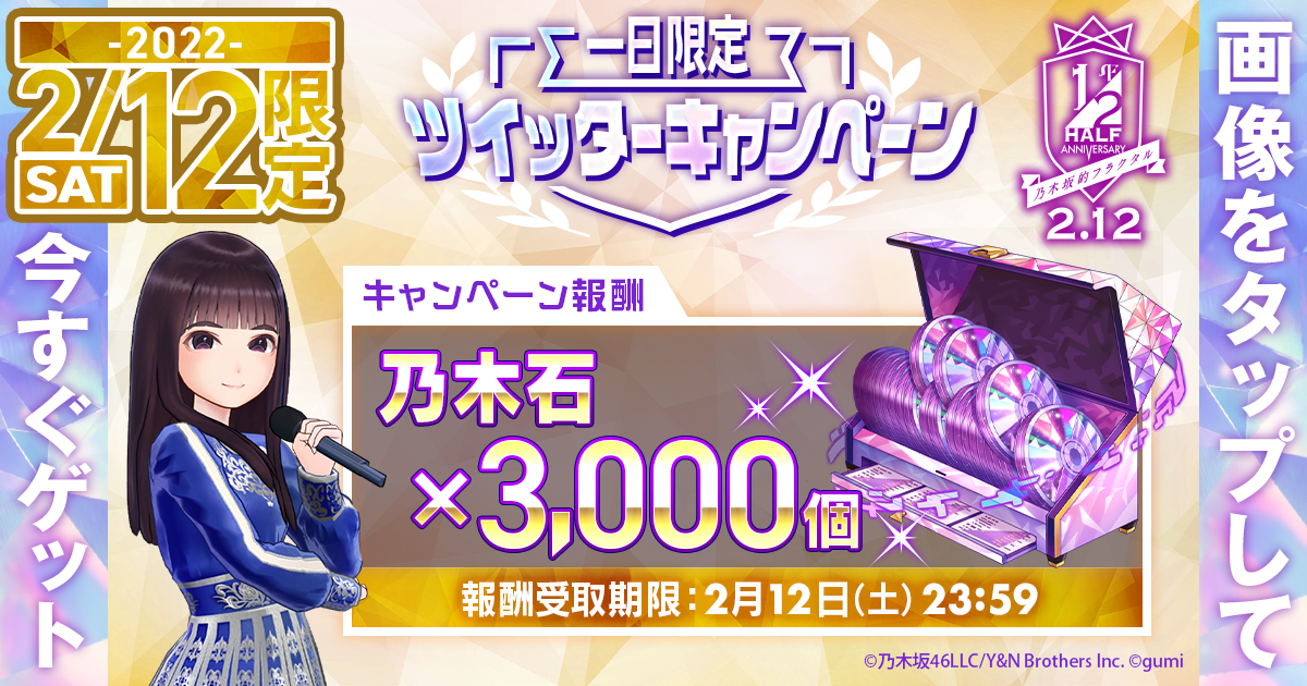 ※報酬が付与されない場合、一度『乃木坂的フラクタル』を終了して、再度該当ツイートの「画像」をタップしてください。