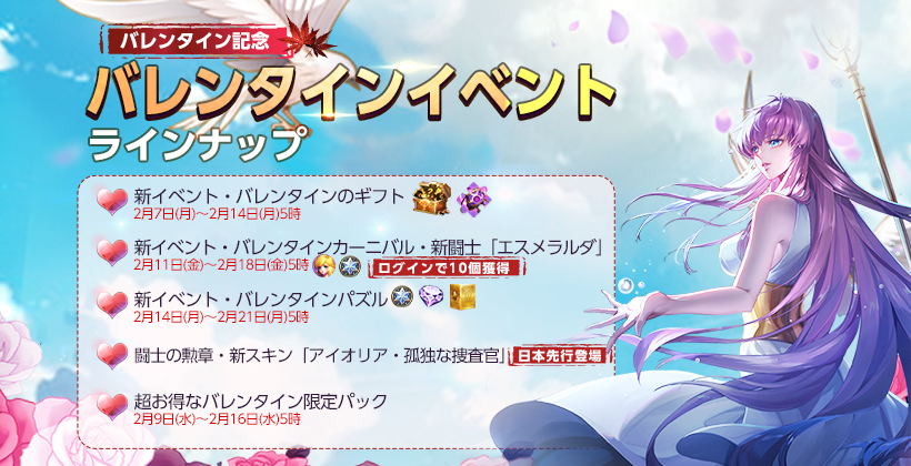 ■イベント「バレンタインカーニバル」開催!闘士「エスメラルダ」が獲得しよう!