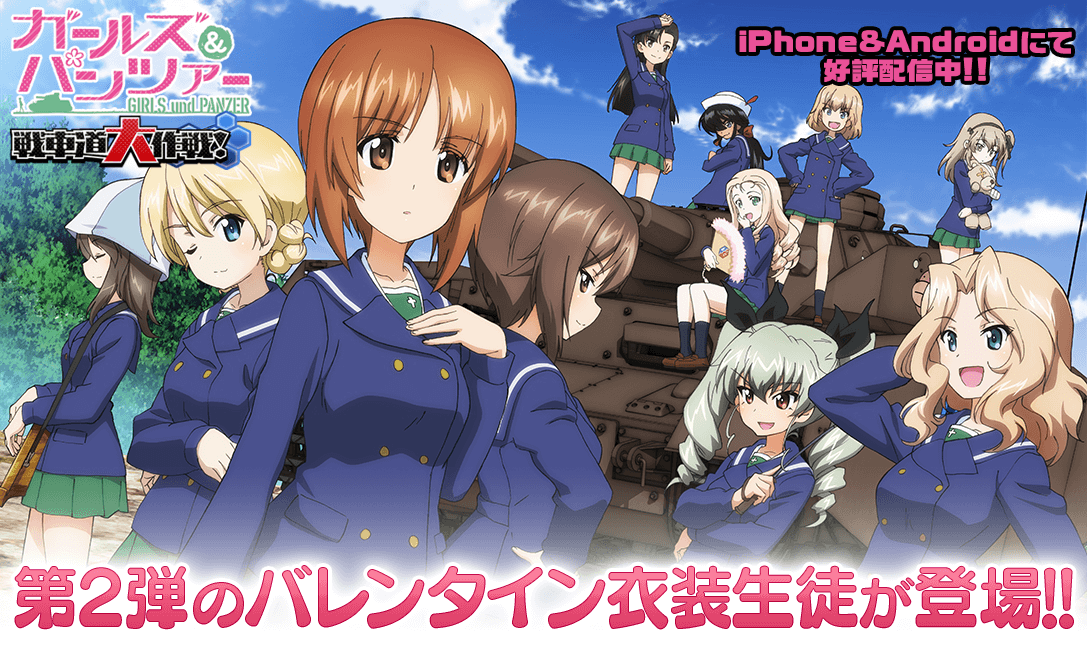 株式会社モブキャストホールディングス(本社:東京都港区、代表取締役CEO 藪考樹)の子会社である株式会社モブキャストゲームス(本社:東京都港区、代表取締役CCO:細野博孝)が参画する戦車道大作戦実行委員会(株式会社博報堂DYミュージック&ピクチャーズ、株式会社モブキャストゲームス)は、iOS/Android向けゲーム『ガールズ&パンツァー 戦車道大作戦!』において、バレンタイン衣装生徒第2弾の登場についてお知らせいたします。