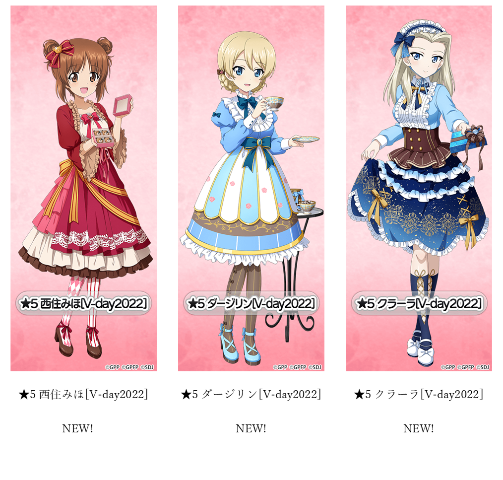 ■バレンタイン衣装の生徒が追加登場!西住みほやダージリンなどが新規追加!