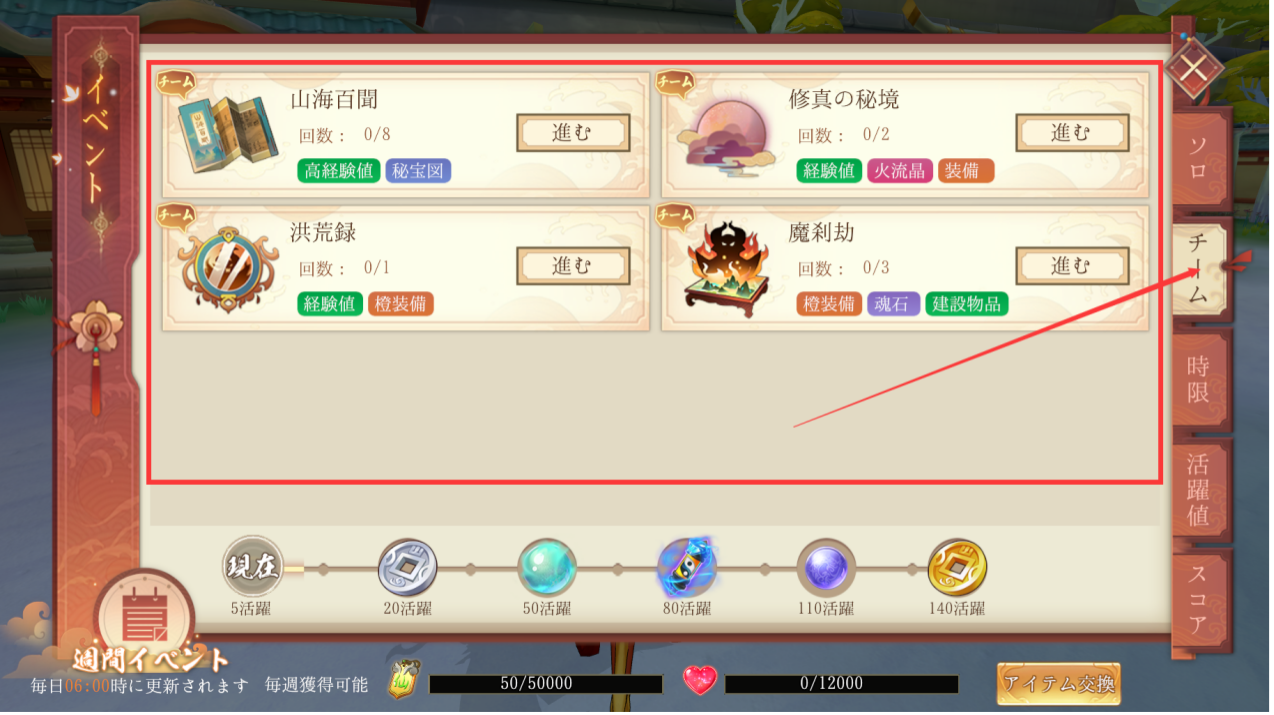 30万人達成:報酬A/背中飾り1個、報酬B/上級・霊気丹3個、報酬C/煥彩醸3個