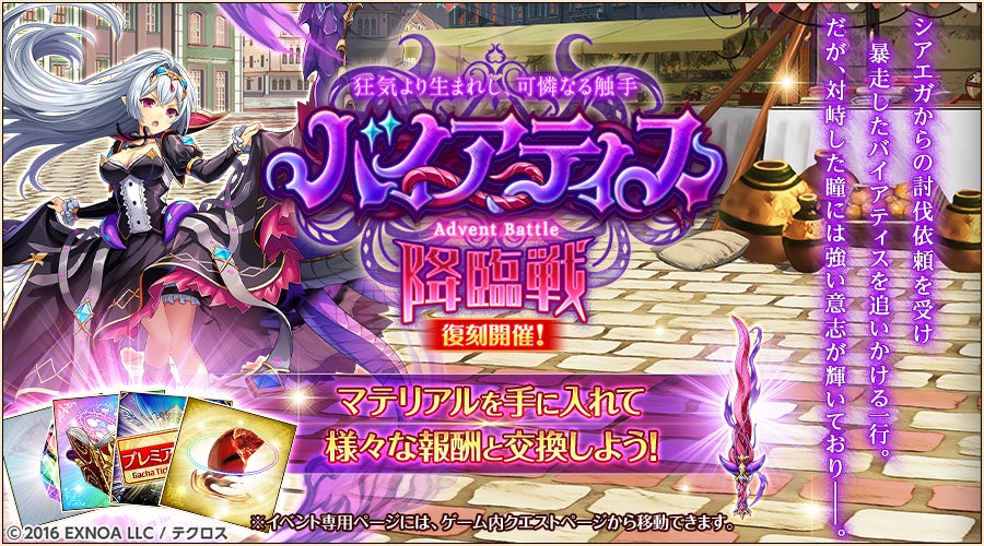合同会社EXNOA(本社:東京都港区、CEO:村中 悠介、URL:https://games.dmm.com/)が運営するDMM GAMESにおいて『神姫PROJECT A』は、本日、「ベロボーグ」はSSR昇格、「チェルノボーグ」は新衣装で再登場したことを発表した。更にSSR幻獣が手に入る降臨戦イベントも復刻開催している。