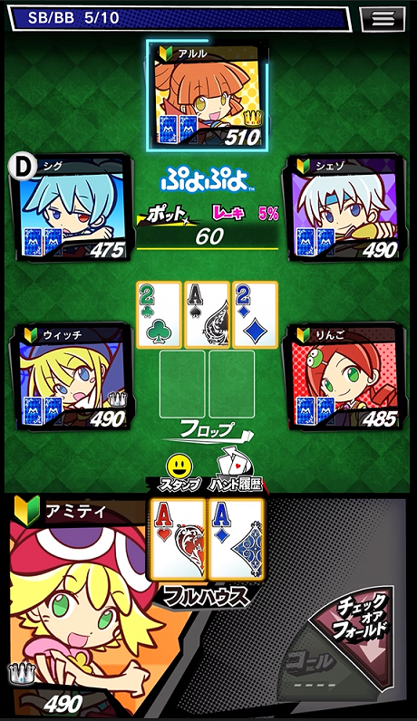 ▼ 「アミティ」、「シグ」、「ウィッチ」、「りんご」がポーカーをプレイ!