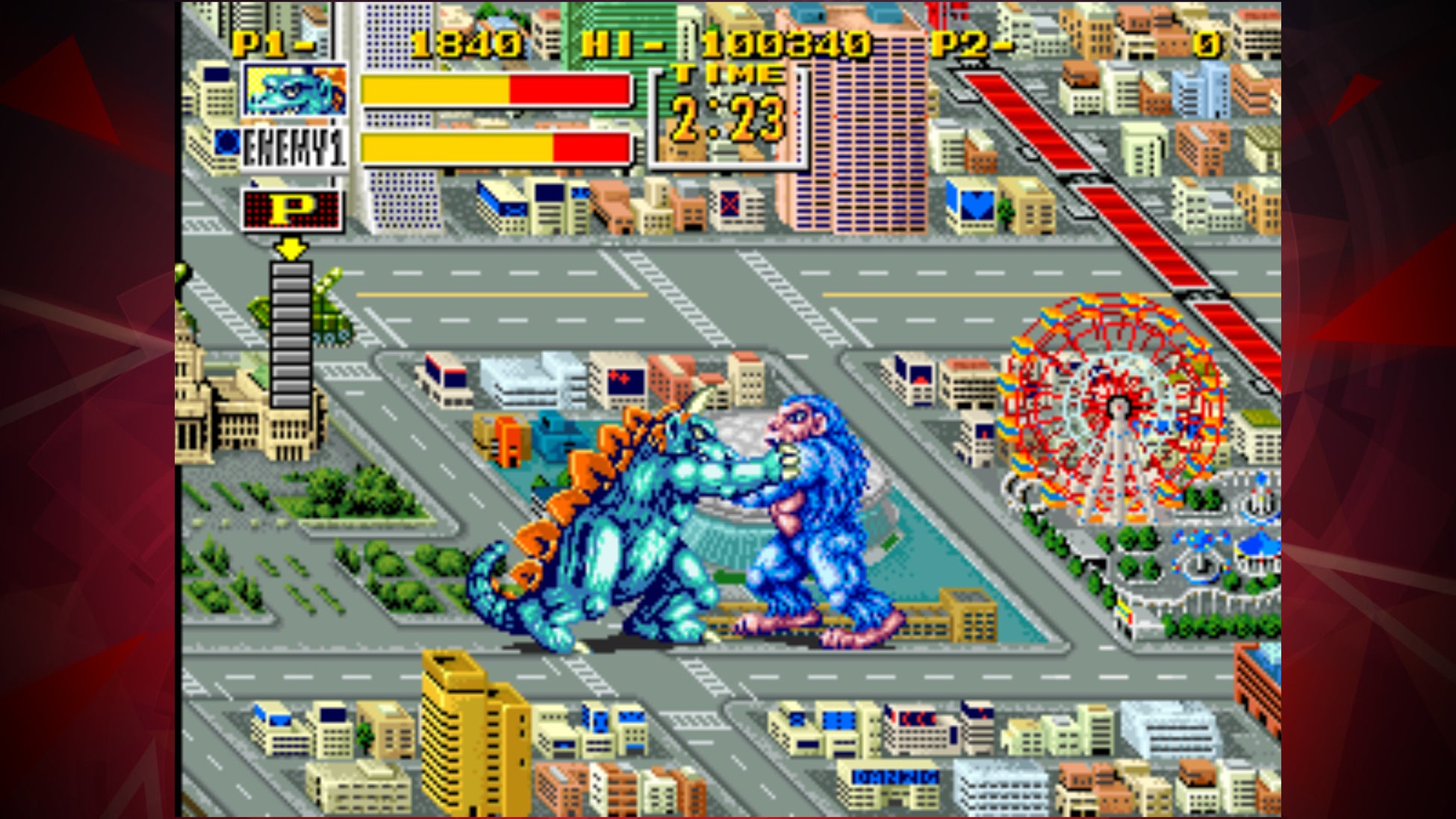 『キング・オブ・ザ・モンスターズ』は、1991年にSNKより発売されたアクションゲームです。6種類のモンスターから一体を選んで日本各地を転戦し、その頂点を目指します。パンチやキックといった通常攻撃の他、より強力な火炎攻撃やビーム攻撃などの必殺技が用意されており、これらを駆使して敵と戦います。