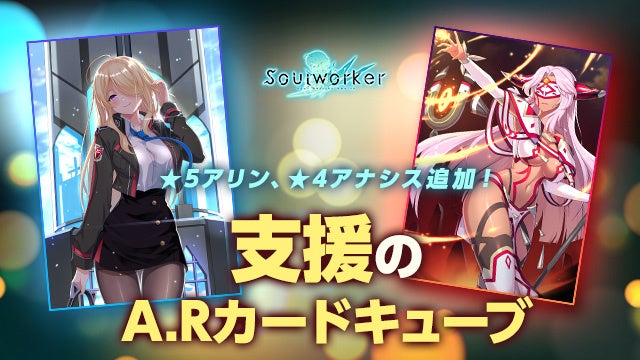 PCオンラインゲーム、崩壊した世界に選ばれた少年少女達のアニメチックアクションMORPG『Soulworker』(ソウルワーカー)は、2022年2月17日(木)にチャットで使用できるスタンプ&ボイスリングシステムを実装しました。また、新規A.Rカード「アリン」などが獲得できるA.Rカードキューブの販売を開始したことをお知らせいたします。