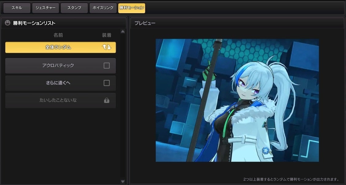 スキル項目に「勝利モーション」タグが追加され、メイズまたはレイドクリア時のモーションが選択できるようになりました!