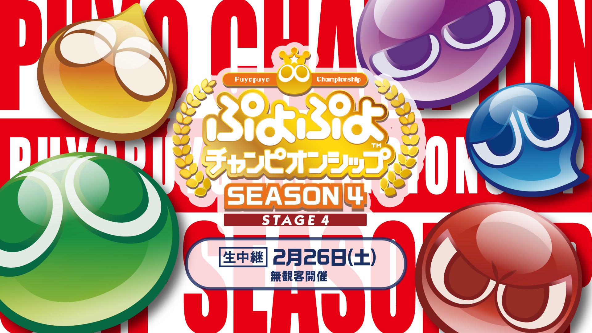 株式会社セガは、ジャパン・eスポーツ・プロライセンス認定タイトルである、対戦アクションパズルゲーム「ぷよぷよ」シリーズについて、2022年2月26日(土)にオフライン・無観客で開催されるセガ公式プロ大会「ぷよぷよチャンピオンシップ SEASON4 STAGE4」のインターネットライブ配信情報を公開いたしました。