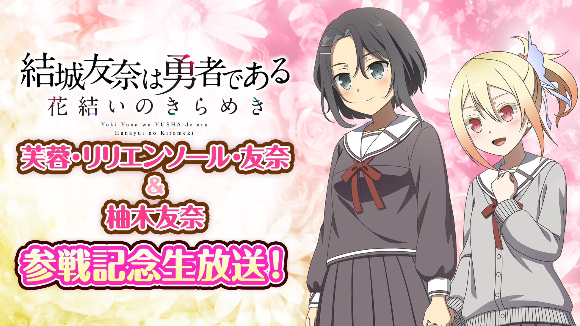 株式会社オルトプラス(本社:東京都豊島区、代表取締役CEO:石井 武、東証1部:3672)は、大好評配信中のスマートフォンゲーム・PCブラウザゲーム『結城友奈は勇者である 花結いのきらめき』(略称:ゆゆゆい)において、芙蓉・リリエンソール・友奈と柚木友奈が『ゆゆゆい』に参戦したことを記念して本日2月19日(土)20時より生放送を実施することをお知らせします。