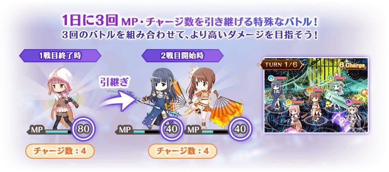 挑戦回数を消費するバトルにて獲得したCharge Combo数やMPを引き継いで挑戦できます。