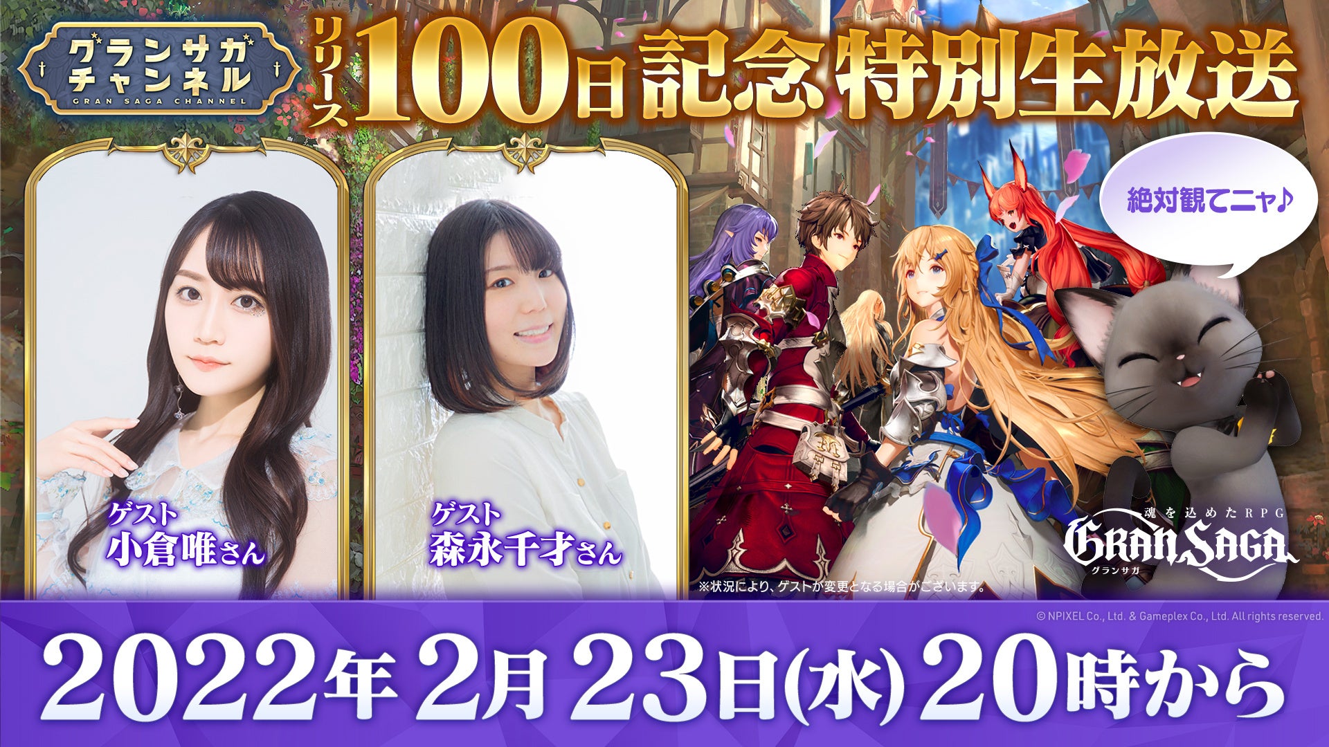 グランサガのリリース100日を記念した特別生放送「グランサガチャンネル」を、2月23日(水)20時より公式YouTubeにて配信いたします!