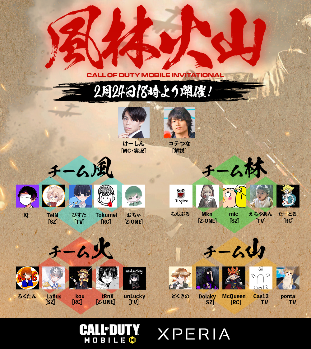 株式会社XENOZ(神奈川県川崎市)が運営するプロeスポーツチーム「SCARZ」は、バトルロイヤルゲーム「Call of Duty Mobile」の大会「風林火山」を2月24日(木)に開催します。