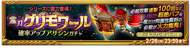 <シリーズに霊刀登場!「霊刀グリモワール確率アップ アサシンガチャ」販売中!>