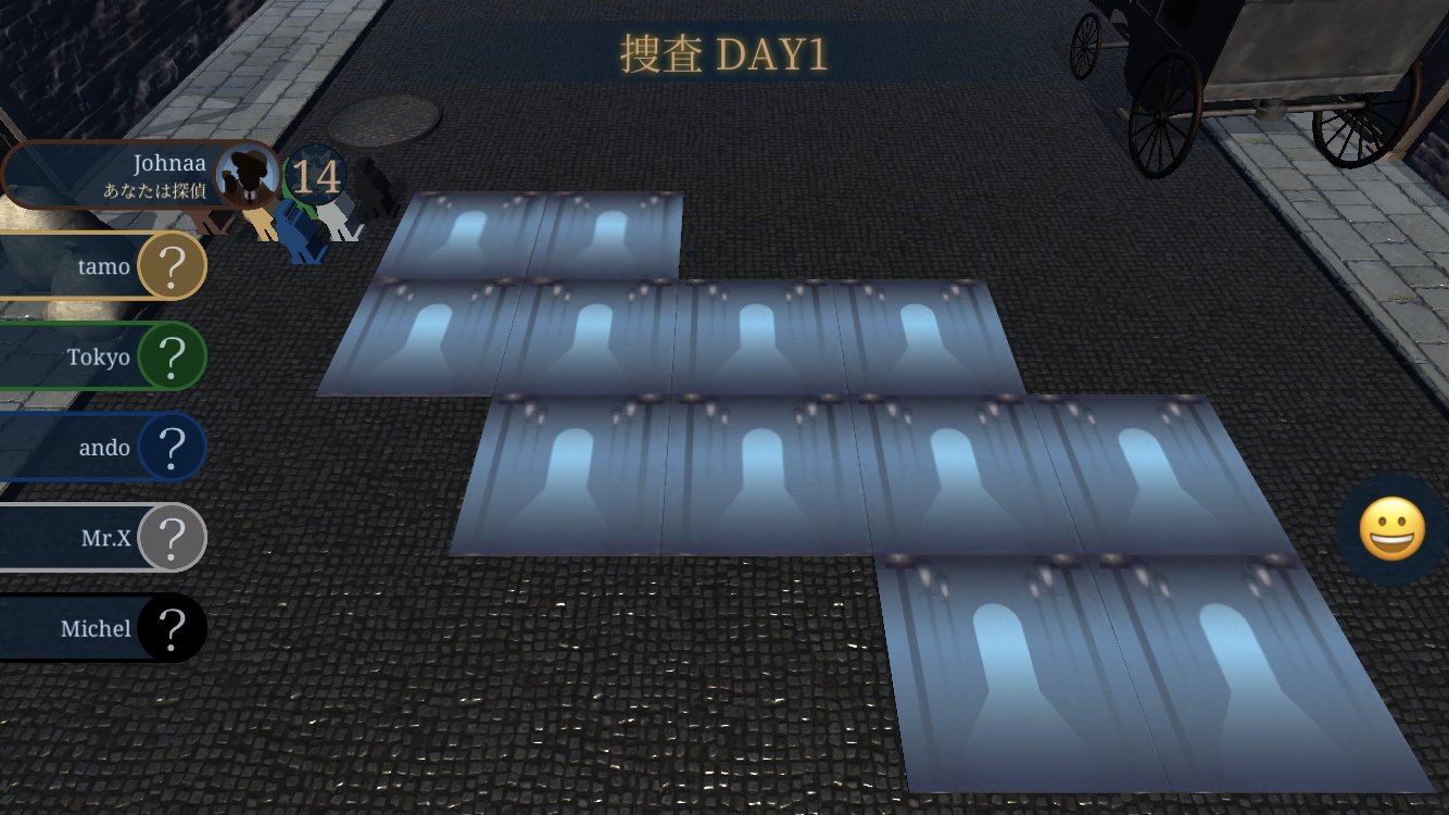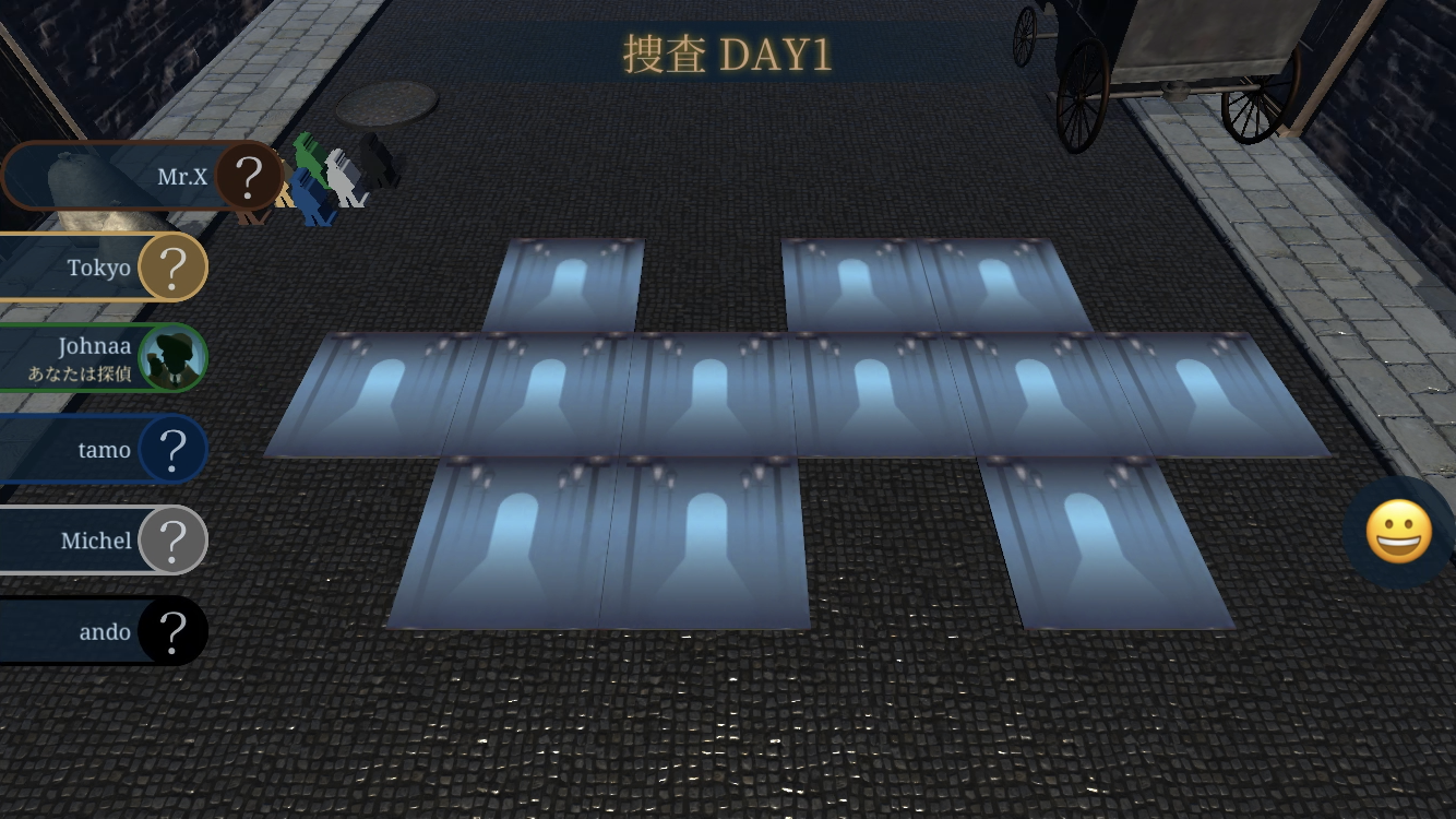 全員が移動すると夜のターンが訪れます。夜のターン、ジャックプレイヤーは自分の隣接するタイルを選択し、そのタイルで殺人を犯します。