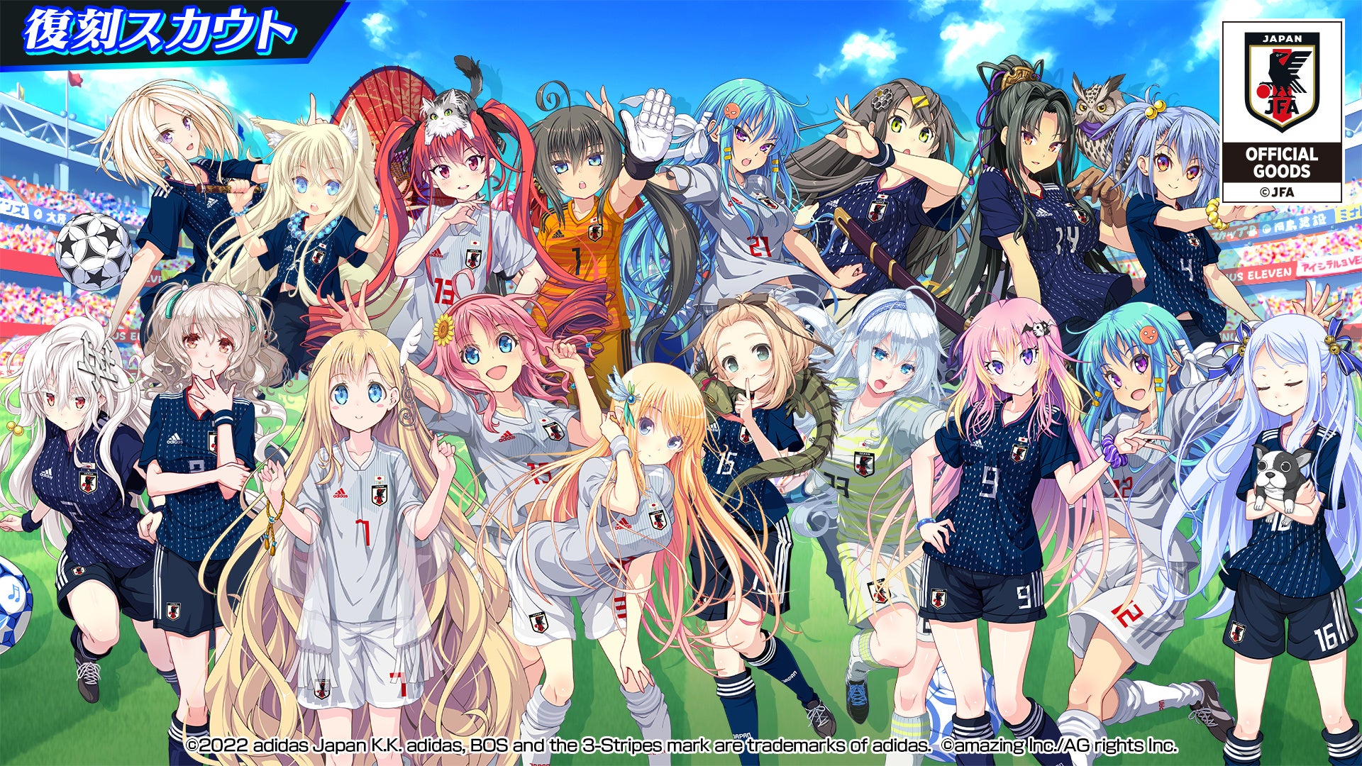 株式会社アメージングのiPhone,Android用アプリ、美少女育成サッカーシミュレーションゲーム『ビーナスイレブンびびっど!』(略称:びびび DL:https://app.adjust.com/dxbe9b1)は、2016年版、2018年版、2020年版のサッカー日本代表ユニフォームを着た総勢66名の選手が再登場する限定復刻スカウト3種を3月1日(火)より期間限定で開催いたします。