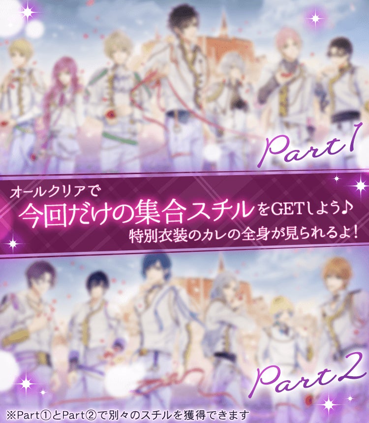 4周年記念イベント「キセキの先で紡ぐ時間~The Love of My Life~」を配信いたします。本イベントはPart1、Part2合わせて本編に登場するキャラクター全員のルートを配信いたします。各パートを全てクリアすると今回だけの特別衣装の集合スチルが手に入ります。