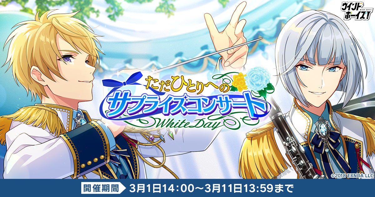 合同会社EXNOA(本社:東京都港区、CEO:村中 悠介、URL:https://games.dmm.com/)が運営するDMM GAMESは、生徒と奏でる青春育成ゲーム『ウインドボーイズ!』において、丸山 大輔(CV:古田一紀)の限定SSRカードが登場する新イベント「ただひとりへのサプライズコンサート」を開始しましたことをお知らせいたします。