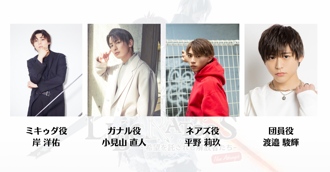 また追加キャストとしてミキゥダ役には岸 洋佑、ガナル役には小見山 直人、ネアズ役には平野 莉玖、団員役には渡邉 駿輝が決定いたしました。
