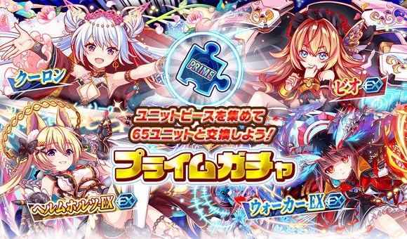 プライムガチャでは、超フィーバーフェスユニット「夜蝙する矯鳴者 ヘルムホルツ」や今までハッピーガチャでのみ入手可能だった「殻球の煽慢者 ビオ」などが排出されます!