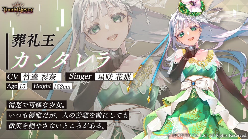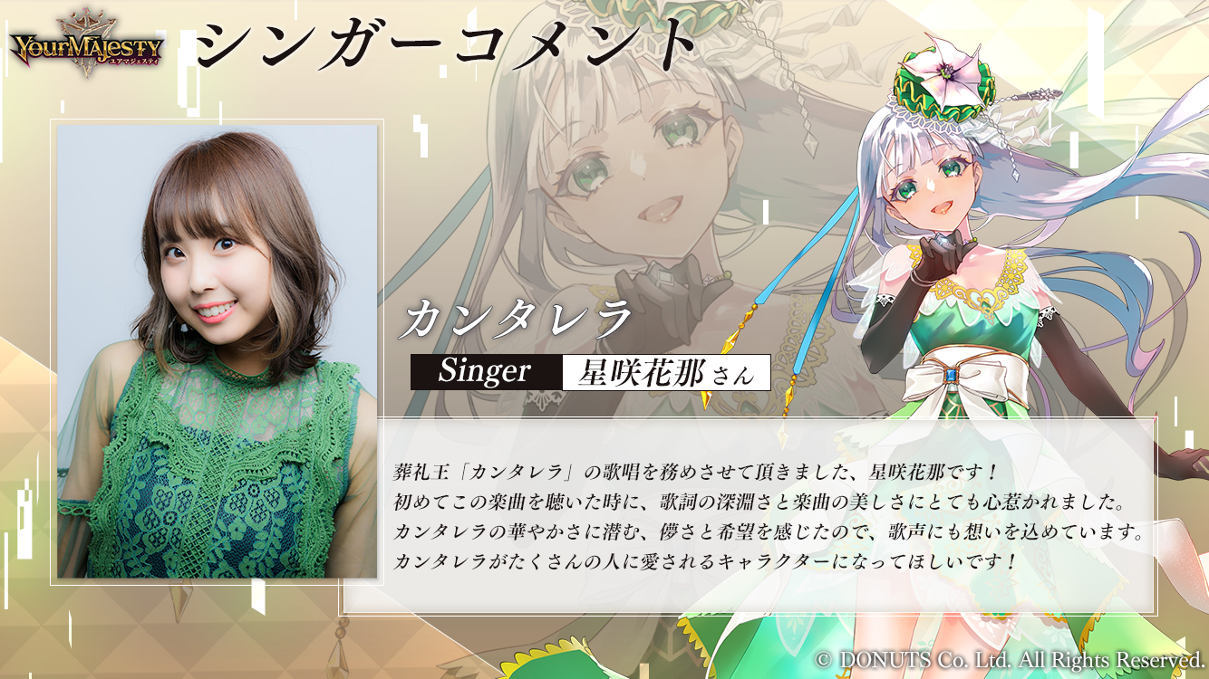 『ユアマジェスティ』は滅びに瀕した世界を舞台に転生した「異世界の王や女王」との物語を紡ぐ、【「正義」と「狂気」のRPG。】です。DONUTSが企画・運営・開発・制作を行い、ゲーム情報に先立ち、メインテーマ曲、イメージソングやキャラクターソングを公開しています。今回は4曲目としてカンタレラのキャラクターソング『天使のクラリオン』のMVをYouTubeにて公開いたしました。