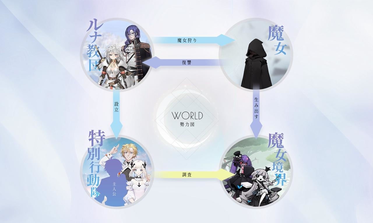 主人公は「境界」に潜む魔女と対立する組織・ルナ教団の「特別行動隊」に所属しており、三日月大陸の街、リトレスを人形たちとパトロールしたり、迷宮と化した魔女境界を調査します。ルナ教団のメンバーや、特別行動隊の仲間、さらには魔女境界で現れる敵にも多彩なキャラクターがおり、唯一無二の物語を紡ぎます!