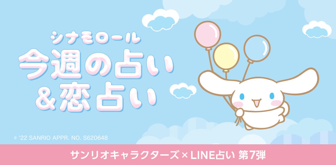 LINE株式会社(本社:東京都新宿区、代表取締役社長:出澤 剛)は、当社が運営する、有名占い師による占いを配信するオンライン占いアプリ「LINE占い」https://lin.ee/BU8Jzav/dtlyにおいて、大人気サンリオキャラクターの「シナモロール」とのコラボとして、1.「シナモロールの今週の占い〜どんなことが起こる?〜」と、2.「シナモロールの恋占い」を、本日より配信いたしますのでお知らせいたします。