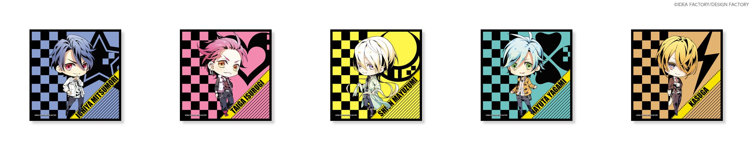 ラインナップには「光森 壱哉(CV:鳥海 浩輔)」「石動 大我(CV:岡本 信彦)」「黛 汐音(CV:野島 健児)」「八神 那由太(CV:下野 紘)」「春日(CV:田丸 篤志)」が登場します。