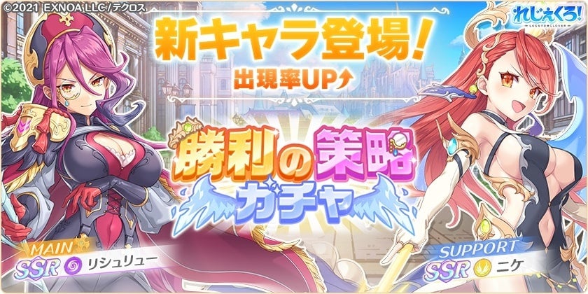 合同会社EXNOA(本社:東京都港区、CEO:村中 悠介、URL:https://games.dmm.com/)が運営するDMM GAMESにおいて、真の英雄となる王道ファンタジー『れじぇくろ!~レジェンド・クローバー~』(https://www.legend-clover.net/)は、新キャラクター「リシュリュー」と「ニケ」が登場したことを発表した。さらに「れじぇくろ!」のプレイヤー数が100万人を達成したことを記念したキャンペーンも開催!