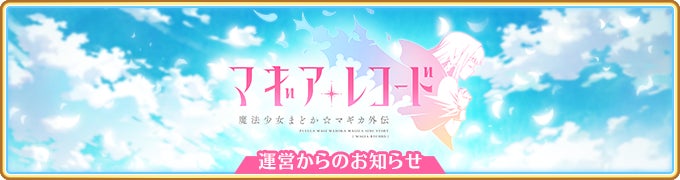 蒼樹うめ描き下ろしのキャラクターが多数登場するスマートフォンゲーム『マギアレコード 魔法少女まどか☆マギカ外伝』(iOS/Android/Windows向けアプリ 基本プレイ無料 ※一部アイテム課金あり)は、イベント『伝説の終わり、光の果て ~魔法少女たると☆マギカ~』および『期間限定 タルト ピックアップガチャ』『期間限定 リズ ピックアップガチャ』『期間限定 エリザ&コルボー ピックアップガチャ』『期間限定 タルトver.Final&ラピヌ ピックアップガチャ』『期間限定 イザボー 魔女ver. ピックアップガチャ』『期間限定 ミヌゥ ピックアップガチャ』『有償限定 魔法少女たると☆マギカ★4魔法少女確定ガチャ』を開催しております。また、メインストーリー第2部9章「光差す正機迷宮」の配信、『新章キャンペーン』の開催、新機能「ギャラリー鑑賞」の公開をいたしました。