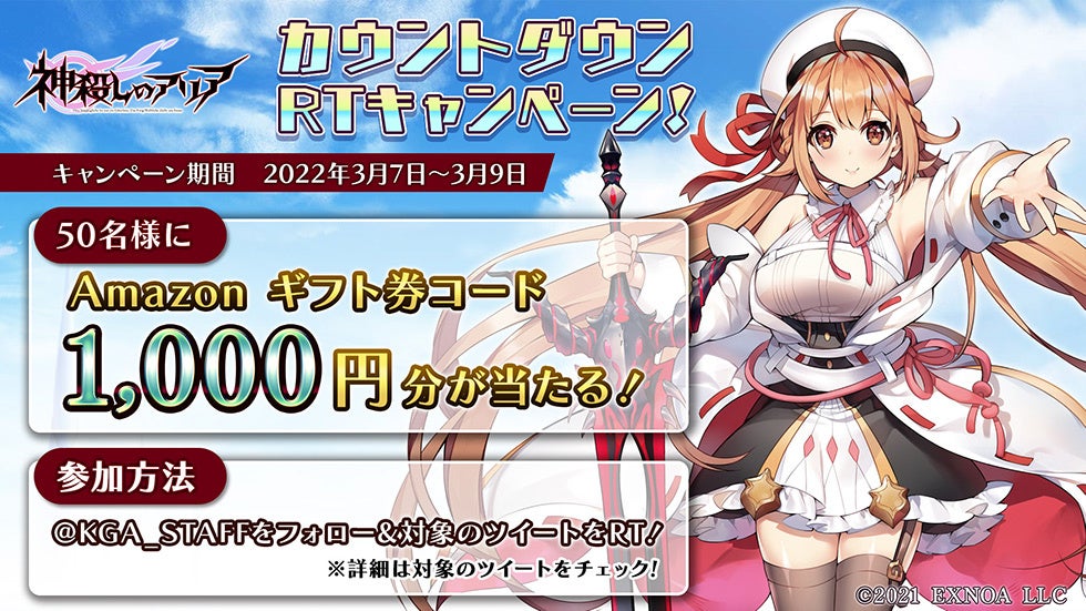 2.「神殺しのアリア」Twitterから投稿される、「神殺しのアリア」App Store/Google Play版カウントダウンキャンペーンの対象ツイートをリツイートしよう!